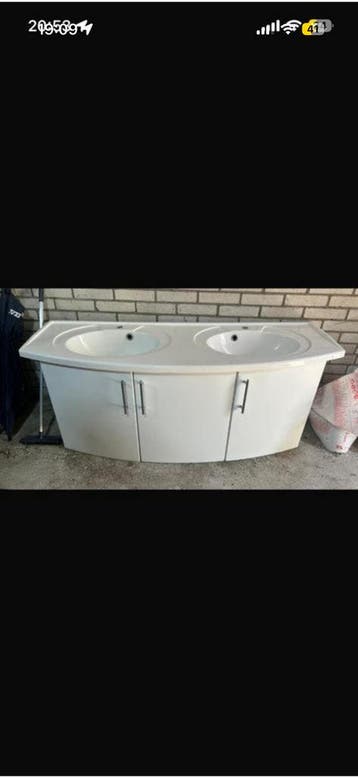 Mooi zwevende wastafel kast met dubbele wasbakken. Inclusief montage materiaal. Ophalen in beuningen