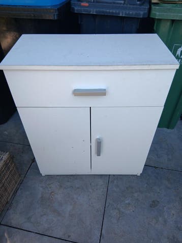 Wit houten kastje gratis af te halen gebruikt, handgreepje eraf en hier en daar wat beschadigd op te halen in deventer (vijfhoek)