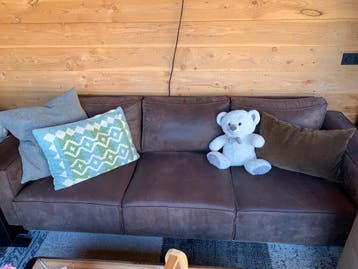 Afmeting: lengte: 240 cm. Breedte: 90 cm. Zithoogte: 57 cm. In nette staat, niet doorgezakt, geen noemenswaardige vlekken. Diegene die hem als eerste ophaalt mag hem gratis hebben.