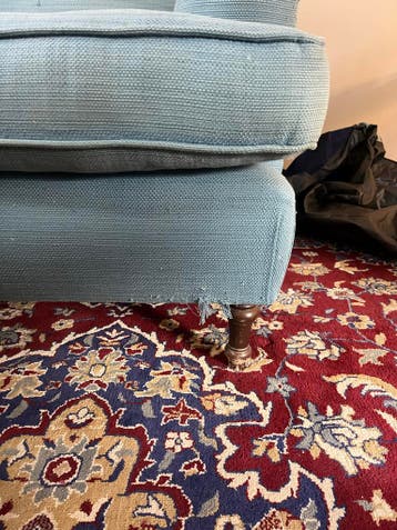 Comfortabele blauwe zitstoel met lichte gebruikssporen, zoals te zien op de foto's. Ideaal voor een gezellige leeshoek of als extra zitplaats. De stoel is stevig en biedt een goede ondersteuning.