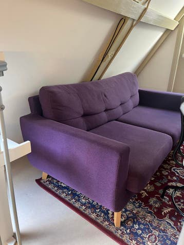 Mooie paarse bank, zo goed als nieuw. De bank is in uitstekende staat en kan nog jaren mee. Let op: zelf tillen bij ophalen.