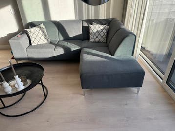 Wij verkopen deze hoekbank ivm aanschaf van een nieuwe. Het betreft een stoffen bank met metalen poten. Het is een 2,5 zits.
