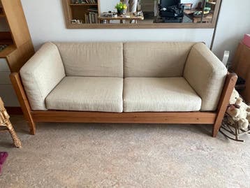 zitbankje hout met losse kussens