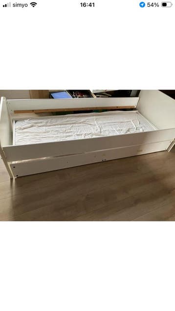 Gratis eenpersoonsbed met handige onderlade. Ideaal voor extra opbergruimte in de kinderkamer of logeerkamer. Let op: er wordt geen lattenbodem meegeleverd. Het bed is gebruikt, maar kan zeker nog een