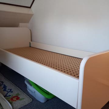 Afmeting ledikant lengte 196 cm breedte van 87 cm met matras mogelijk