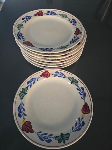 Kapot boerenbont servies: 3 ontbijtborden en 7 dinerborden. Misschien nog handig voor keramiek hobby? Gratis af te halen in tilburg (-noord)