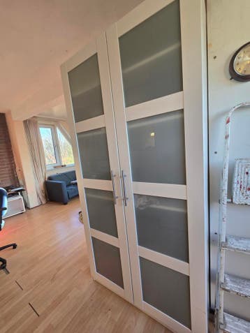 2,5 m x 1,09 m kledingkast met melkwit glas. Kan door haler ter plaatse gedemonteerd worden