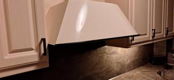 Apart ontwerp geen standaard model crème kleurige afzuigkap goedwerkend gaat weg wegens verandering keuken.