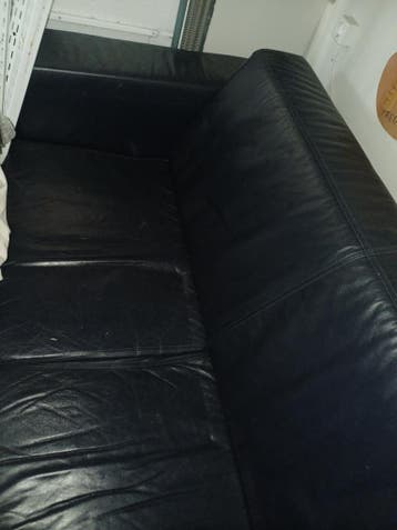 Hierbij een bankstel van leer is gratis op te halen bankstel is ongeveer 180cm breed