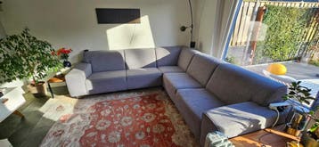 Grijze hoekbank in gebruikte staat. Alleen afhalen. De bank is in twee delen uit elkaar te halen. Diepte is 92 cm