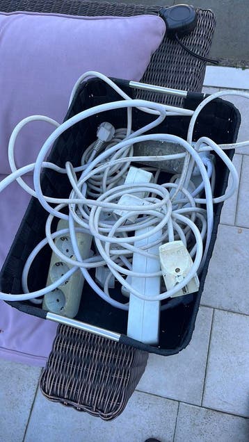 Bak met oude verlengsnoeren , 6 stuks