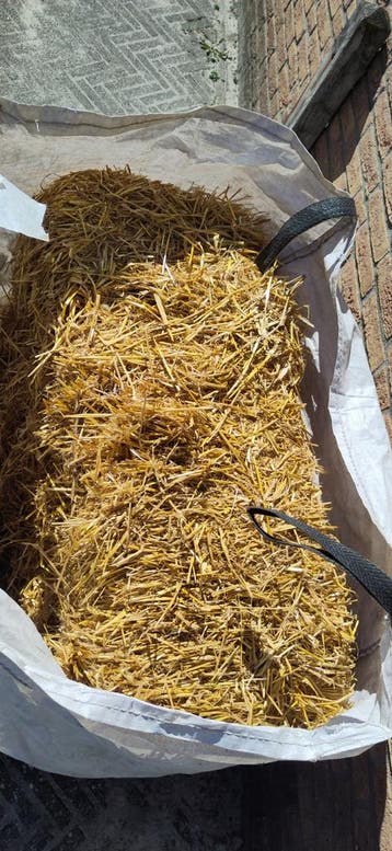 Staat in de weg. Mag gratis gehaald. Van vorig jaar. Altijd droog gestaan stro