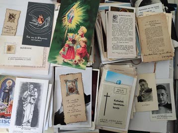 Doos met een paar honderd devotieprenten, gebedsprenten (geen bidprenten), foto's ed. Voor de liefhebber. Ophalen in oegstgeest