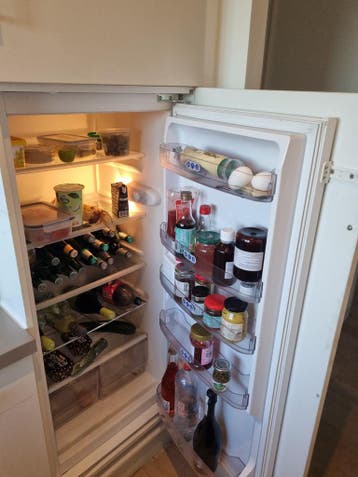 Deze inbouw koelkast van whirlpool is beschikbaar. De koelkast heeft een aantal planken en lades. Er is ook ruimte in de deur voor flessen en kleinere items. De koelkast is gratis op te halen op zonda