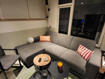 Deze grijze hoekbank is beschikbaar. Er zit een klein gaatje in de stof, zoals te zien is op de foto. Verder is de bank nog prima. Deze mag z.s.m. Gratis opgehaald worden.