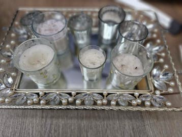 Ik bied hied paar kaarsen met dienblad van spiegel ,kijk mijn andere advertantie