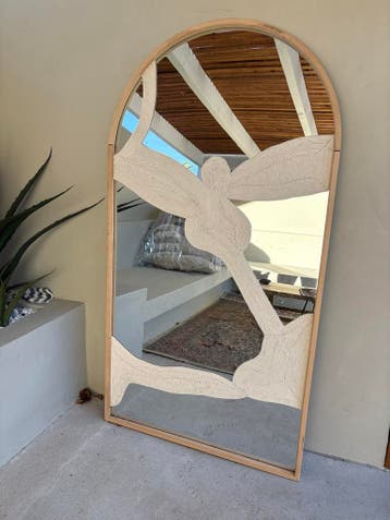 Mp heeft er een mooi verhaal van gemaakt :) : unieke spiegel met een artistieke touwdecoratie die scheuren in het spiegelglas bedekt. Dit geeft de spiegel een bijzondere en karakteristieke uitstraling