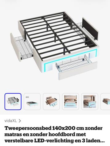 2 geleverd ipv 1 kon niet meer retour nog in de verpakking dit multifunctionele bedframe combineert stijl en functionaliteit. Het stevige metalen lattenframe biedt een comfortabel draagvermogen tot 3