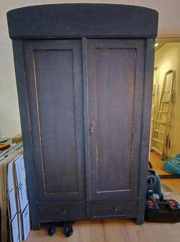 Deze houten kledingkast in antieke stijl staat niet handig in mijn woonkamer. Deze mag gratis weg! Mits ie wordt opgehaald. Ik geef hem het liefst weg aan zij die het wat minder breed hebben momenteel
