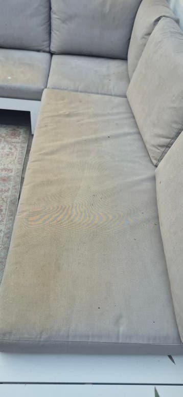 Gratis deze set bestaat uit 6 rugkussens en 3 zitkussens. De zitkussens zijn 1.55 X 70 cm. Ze zijn gebruikt en hebben wat vlekken, zoals op de foto's te zien is. Ze zijn gratis af te halen.