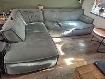 Bank, door de lichtinval lijken er vlekken op te zitten, dat is niet zo. Zit nog prima maar gaat weg door nieuwe bank. Gratis af te halen op dinsdag 14 of woensdag 15 april. Bestaat uit 2 delen; deel