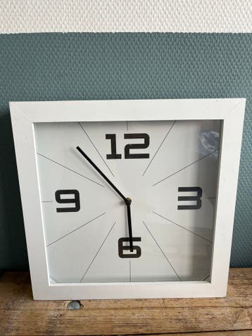 Mooie witte wandklok die weer perfect werkt na het vervangen van de batterij. Gratis op te halen.