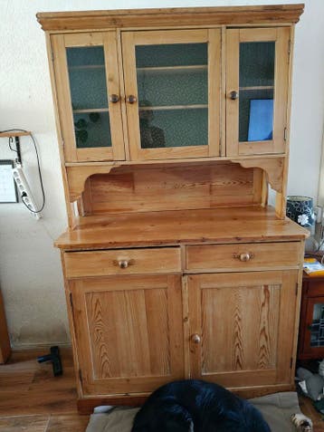In de kast zit veel ruimte en heeft wel een vintage sfeertje, zeker door het behangetje in het bovendeel er zitten beschadigingen op in de vorm van krassen maar voor in je schuur of toch gewoon in je