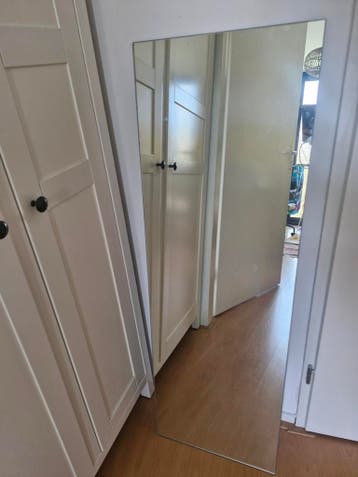 De spiegel is in goede staat, met lichte gebruikssporen aan de randen zoals te zien op de foto's. Perfect om een ruimte groter te laten lijken of om je outfit te checken. Ophalen sloterplas