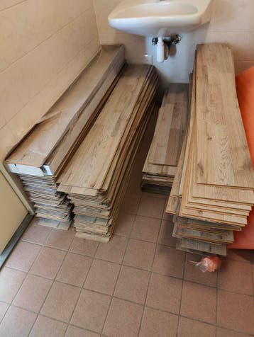 Gereserveerd laminaat, ongeveer 85m2 in prima staat. Dit laminaat is door de vorige huurder achtergelaten. Het is gratis af te halen. Is al losgehaald en gestapeld.