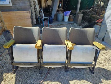 Unieke set van drie vintage bioscoopstoelen, wie vindt het leuk om deze op te knappen? Gratis ophalen in sittard