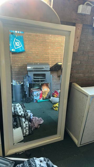 Wit omlijste spiegel groot ongeveer 1,60 heeft wat liefde nodig daarom gratis ophalen