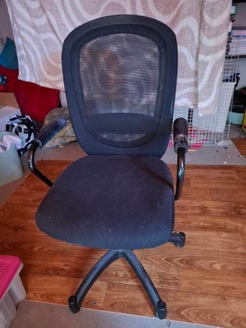 Deze bureaustoel is gebruikt en heeft een klein defect aan de armleuning, daar zit plakband omheen. Hij staat al een tijdje op zolder.