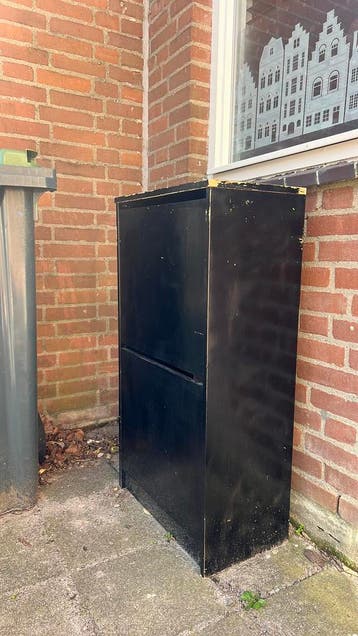 Zwart gespoten aan de buitenkant, verder helemaal in orde.