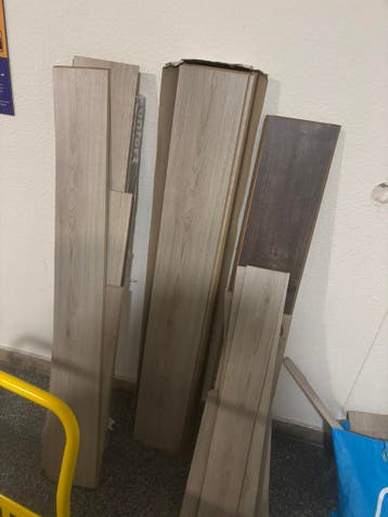 Gratis laminaat. Donker eiken hout en licht eiken hout. Donker eiken hout heeft een dichte pak met losse laminaat. Lichte eikenhout is losse laminaat. Van de gamma.