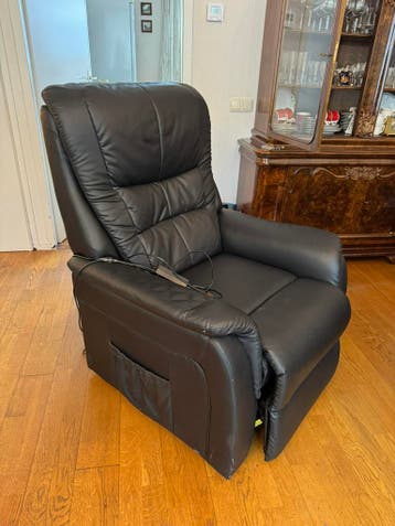 Zwarte kunstleer elektrische stoel, stoel heeft enkele beschadigingen in kunstleer maar elektrisch gedeelte functioneert. Gratis ophalen!