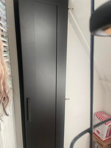 Zwarte kledingkast met hangruimte en planken.Zelf demonteren
