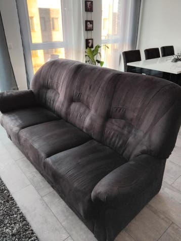 Zwarte bank 3 zits, de zijkant is verkleurd door de zon ( zie laatste foto ), evt. 2 Zits erbij gratis af te halen