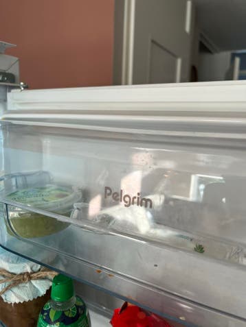 Ophalen vanaf 14 of 15 april vanwege nieuwe koelkast! Een witte pelgrim koelkast. De koelkast heeft een vriesvak onderin. Binnenin zijn er meerdere glazen planken en een lade voor groenten en fruit. D