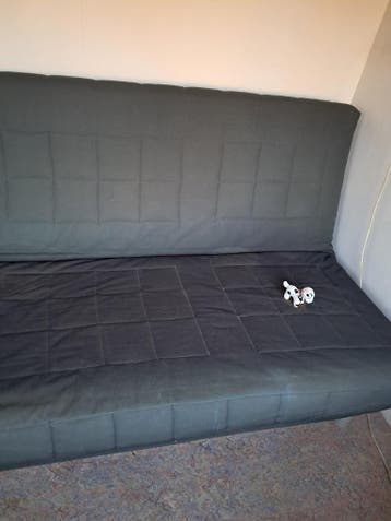 Deze slaapbank staat er al een poosje en is erg weinig gebruikt. Afmeting: 140 x 200, uitgeklapt. Diepte zitting 70 cm. Onder het zitgedeelte is opbergruimte voor beddengoed. Ijzeren frame met lattenb