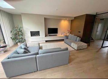 Mooie montel bank met losse elementen, waardoor je de opstelling naar wens kunt aanpassen. De bank is tweedehands gekocht en mag nu naar een derde eigenaar vanwege de aanschaf van een nieuwe bank. Er