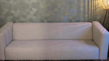 Twee 2,5-zits banken, gratis op te halen. 1 Bank is bekleed met een stof in een lichtblauw/grijze kleur met een geweven patroon. De andere is een blauwe stoffen bank. Deze is inclusief kussens. Ik doe