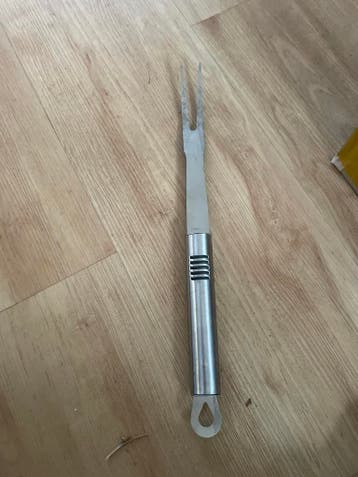 Handige roestvrijstalen vleesvork, ideaal voor het snijden en serveren van vlees. Stevig en duurzaam, een onmisbare keukenhulp.