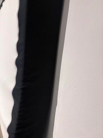 Matras van 180 bij 200 cm. Het matras is wit met een zwarte rand. Het is een tweepersoonsmatras.