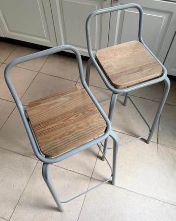 2 hoge stoelen . Bijna niet gebruikt . Mogen opgehaald worden