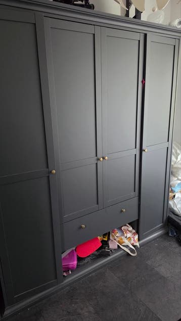 In het midden hang gedeelte en buitenkant plankjes bovenste la zit er nog in maar rolt niet echt onderste la is weg lengte 1.75 Hoogte 2 gratis zelf uitelkaar halen