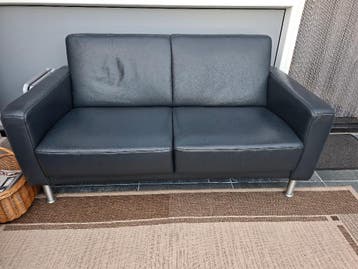 Twee 2-zits banken, leer, in behoorlijk goede staat. Breed 152 cm, diep 80 cm, hoogte 60 cm (verstelbaar).