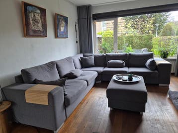 Grijze hoekbank, gratis af te halen. De linker twee zitkussens zijn ingezakt. Afmetingen zijn 2.75X3.00X1.05. Stof is nog intact. Nog prima voor bijv. Een studentenhuis.