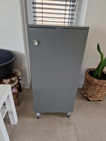 Handig grijs kastje op wieltjes, ideaal voor extra opbergruimte. Het kastje is gemakkelijk te verplaatsen. Gratis op te halen.