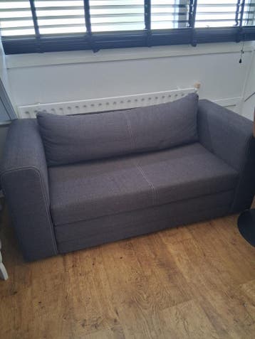 Deze grijze slaapbank is een handige toevoeging voor elke kamer. De bank heeft een stoffen bekleding en kan worden uitgeklapt tot een bed. Er zit een kussen bij. Leuk voor een tienerkamer. Er zitten w