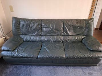 Bank in nog goede staat. Veel gebruikt en op plekken ligt versleten maar grondig schoon gemaakt en heeft geen gaten. Vervoer en tillen moet zelf geregeld worden, ik kan niet helpen de bank te verschou